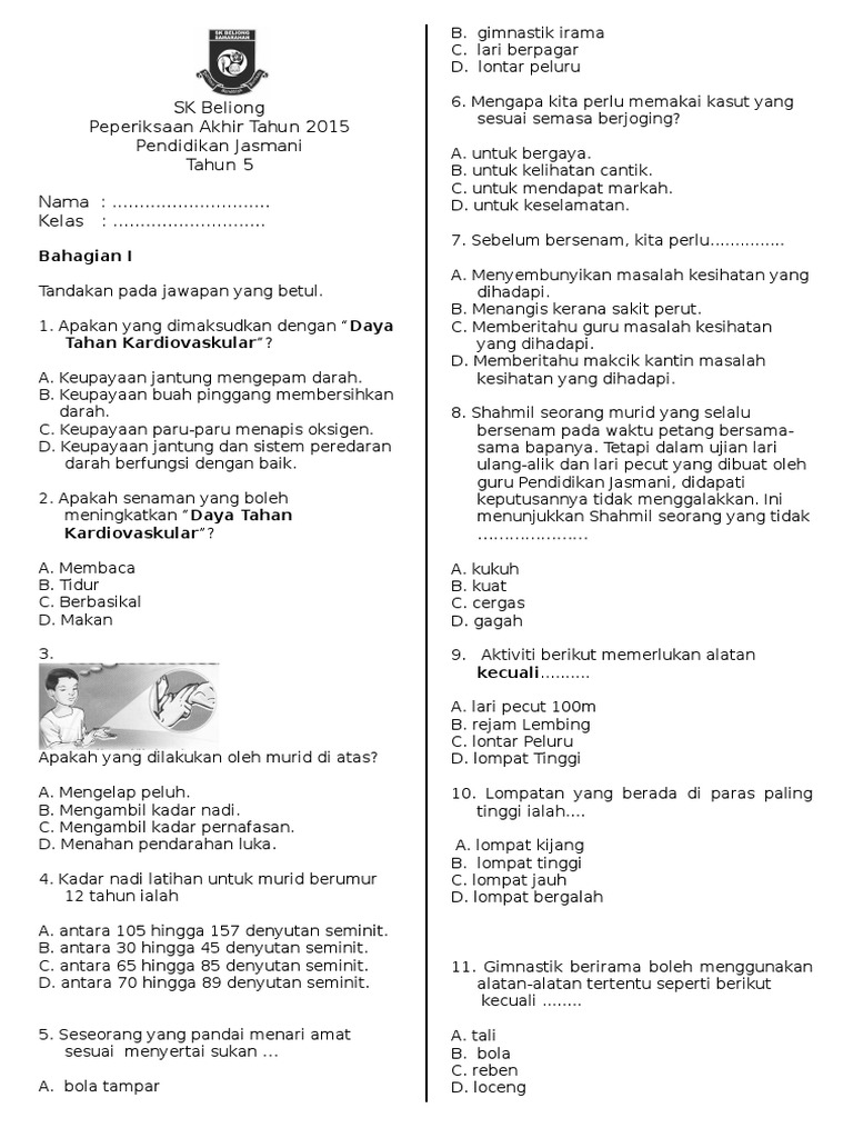 Soalan Pendidikan Jasmani Tahun 6 from imgv2-1-f.scribdassets.com Adakah anda tengah mencari soalan peperiksaan akhir tahun pendidikan kesihatan tahun 6. Mengawal keselamatan di laut lazimnya c. Dapat menganalisis perubahan fizikal lelaki dan perempuan ke. Sesi persekolahan semakin sampai ke penghujungnya. Draf pendidikan kesihatan tahun satu modul 2 : Ujian bulan mac pendidikan kesihatan tahun 3 2016. Downloaded and adapted for school's final examination. Oleh soalan peperiksaan akhir tahun pendidikan kesihatan tahun 4 2015.